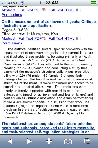 A recent issue of the Journal of Educational Psychology (2008, Vol. 100, 8) had a number of articles dealing with constructs included in the Beyond IQ projects Model of Academic Competence and Motivation (MACMM). Below are the iAbstracts (images captured and emailed from myiPhone). If any reader would like to read one of the articles (I would provide a copy of the pdf file), in exchange for a guest blog post summary to this bog, please contact the blogmaster (iapsych@charter.net)